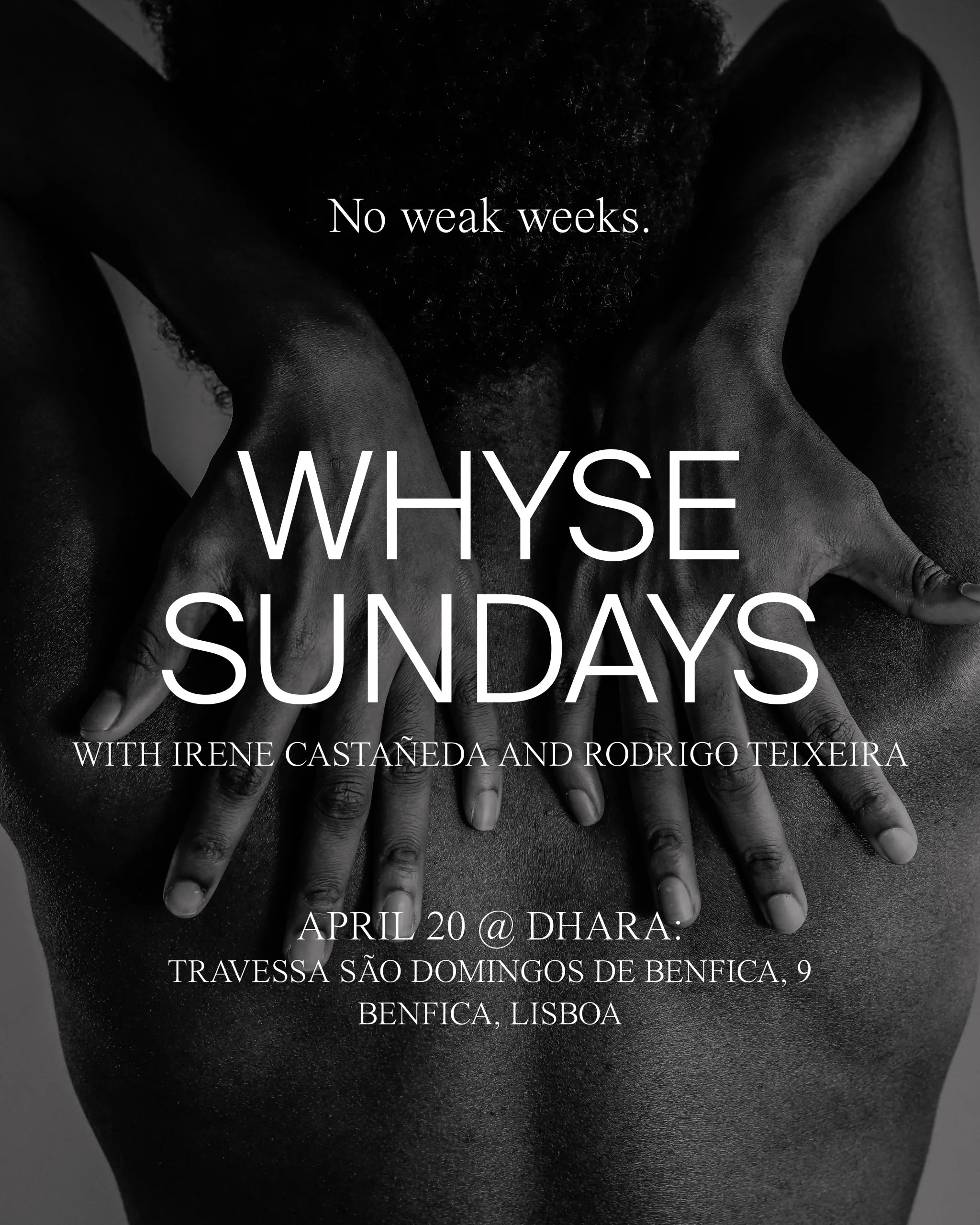 Whyse Sunday With Irene Castañeda and Rodrigo Teixeira Apr 20 2:45 pm - 7:15 pm Whyse Sunday With Irene Castañeda and Rodrigo Teixeira 22,50€ – 45,00€